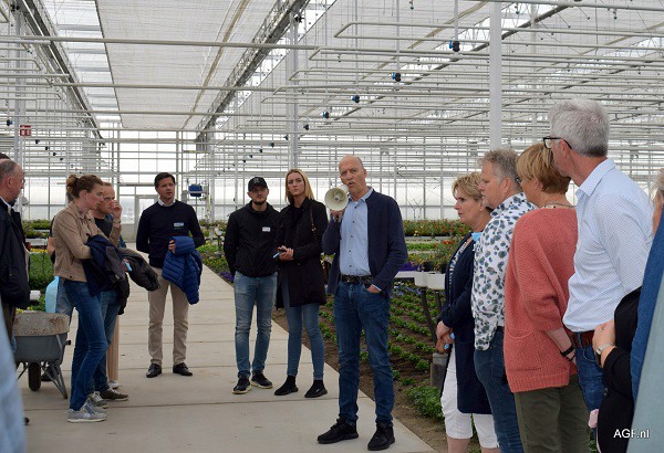 Piet van Vugt leidt de AGF-specialisten rond in de kas