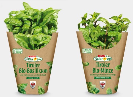 De biologische potkruiden van Spar Natur*pur zijn erg populair aan de POS. Vanaf nu zitten ze in een nieuwe duurzame verpakking: de potten van de Spar Natur*pur Tiroler bio-kruiden bestaan uit 100% gerecycled materiaal en zijn daarmee plasticvrij. De biologische potkruiden zijn nog tot eind juni in acht verschillende soorten bij Spar, Eurospar en Interspar voor 2,49 euro verkrijgbaar. De Spar Natur*pur Tiroler bio-basilicum kost zelfs maar 1,99 euro.