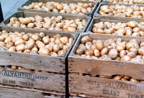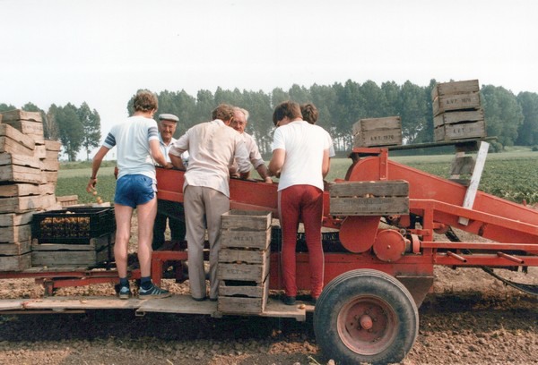 De vroege aardappelen worden op het eiland sinds jaar en dag met de hand gerooid. Hierdoor voorkomt men zware beschadigingen aan de zachte huid van de aardappels. In vroegere jaren was het nog echt handwerk, maar dit is ten dele voorbij. Momenteel worden ze met een klein rooiertje uit de grond gehaald. Achter de rooier is een leesband waar de aardkluiten met de hand uitgehaald worden. Aan de leesband staan vijf of zes mannen, die verder de aardappelen met de hand sorteren. Zoals we op één van de foto's zien doet zelfs de tractorchauffeur mee, terwijl hij zijn tractor onbemand in de laagste versnelling verder laat rijden.