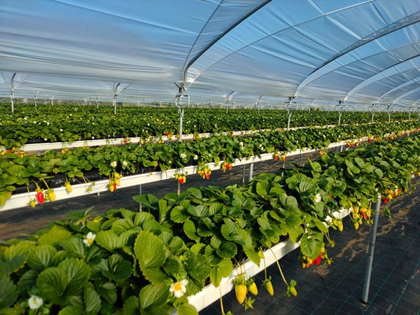 Tweerijige Combimetal constructie voor de substraatteelt van aardbeien