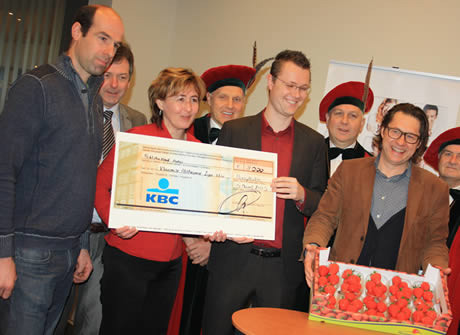 Traditiegetrouw stond de producent ook dit jaar weer de opbrengst van zijn primeur integraal af aan een goed doel. Door inbreng van de veiling, in naam van de aardbeitelers, werd de opbrengst verdubbeld. Het bedrag van 8.000 Euro werd overhandigd aan vertegenwoordigers van de Vlaamse Alzheimer Liga, een vereniging van, voor en door familieleden en mantelzorgers van personen met dementie (www.alzheimerliga.be)