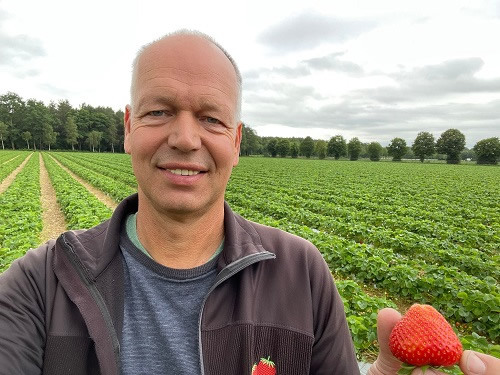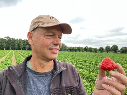 De mooie, grove vruchten van Limalexia (Limgroup) waren voor aardbeiteler Mark van Aert in Zundert de reden om grotendeels van Elsanta af te stappen. “Elsanta voldoet gewoon niet meer aan de wensen. Zeker tijdens een warme zomer worden de vruchten zo klein, dat de arbeidskosten om ze te plukken niet meer tegen de baten opwegen.” Dus nu teelt Van Aert op een kleine 10 ha Limalexia, in de vollegrond, op ruggen met wit folie. “Ik heb eerst een paar kistjes uitgeprobeerd, maar ik was er direct weg van! Het is nu voor het vierde jaar dat ik Limalexia serieus en op grote schaal teel.”