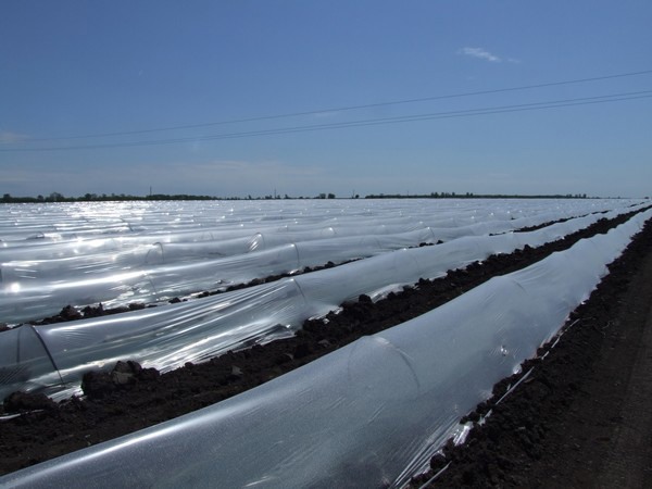 Watermeloentunnels bedekt met plastic bij Eurotész