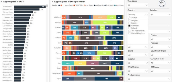 The Tomato Monitor is expanding. Our tomato monitor is already live in Germany, UK, France, Poland, Netherlands and Belgium. In this dashboard we summarize weekly retail data based on the avg. of 200 store visits we perform on weekly basis. Some metrics: