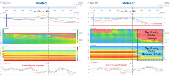 Maricopa Orchards is een familiebedrijf in Fresno, Californië (VS) dat vooral pistachenoten en amandelen teelt. Het bedrijf was in staat om infiltratie van water in de bodem te verbeteren, wat bijdroeg aan uitspoeling van zout, na installatie van een Moleaer XTB™ nanobubble-generator met zuurstof-nanobubbles.