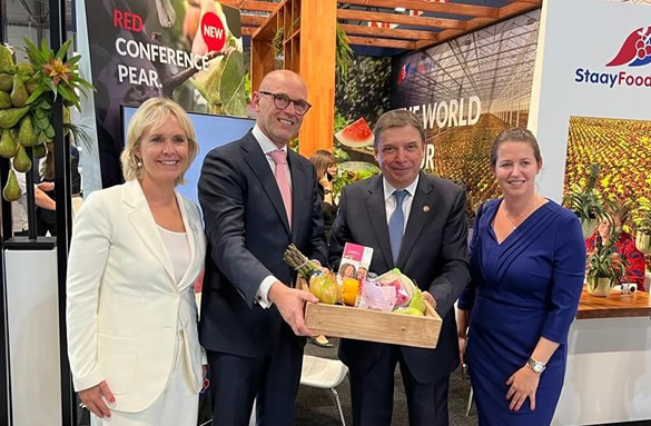 Tholen - Het was een gezellige drukte gisteren op de beurs in Madrid en met name in de 'Spaanse' hallen was het een drukte van belang. Traditiegetrouw worden vandaag de meeste mensen verwacht. De Nederlanders sloten dinsdag af met een netwerkreceptie, georganiseerd door de ambassadeur van Nederland in Spanje, Roel Nieuwenkamp, in het paviljoen van de Holland Fresh Group. Ook de Spaanse minister van Landbouw, Voedsel en Visserij - Luis Planas - kwam een kijkje nemen op de beurs. Ze namen uitgebreid de tijd om kennis te maken en bedrijven te bezoeken.