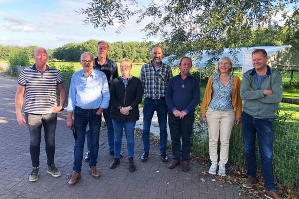 Van links naar rechts: Harrie Janssen, Arie van den Berg, Sybrand Bouma, Maria Buitenkamp, Joost van Dam, Poppe Braam, Nicoline Roozen (stichtingsmanager), Douwe Monsma. Foto: EKO-keurmerk.