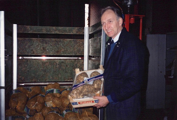 "Dit seizoen hebben we rond 4.000 ton verpakt tegen 3.750 ton vorig jaar. We letten zeer scherp op de kwaliteit. Een belangrijk teeltgebied is Zeeland, met name Zeeuws-Vlaanderen. We hebben een vaste ploeg van zes mensen die we zelf hebben opgeleid voor het nakijken en sorteren op maat. Ook het wassen is een apart vak. We laten dit door twee gespecialiseerde bedrijven doen. We leveren de knollen af in gewassen of ongewassen staat. In het laatste geval noemen we dat geborstelde knollen."