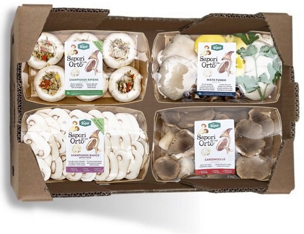 "De lijn van verse paddenstoelen onder het merk Sapori del mio Orto bestaat uit verschillende soorten. Er zijn trays met één soort, maar ook mixen met meerdere soorten paddenstoelen. De trays uit nieuw papier wegen 300 gram. De paddenstoelen kunnen zowel gekookt als rauw worden gegeten", zegt Massimiliano Ceccarini, CEO van Sipo.