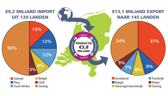 Nederland was in 2021 toonaangevend in de handel van verse groenten en fruit ondanks hoge transportkosten, een tekort aan zeecontainers, Brexit en lockdowns. De verkoop van verse groenten en fruit aan het buitenland steeg naar €13,1 miljard (+1%). De exportwaarde van vers fruit viel even hoog uit als in 2020, terwijl die van verse groenten met 2 procent toenam. Het totaal aantal kilo's aan verse groenten en fruit dat over de grens is verkocht daalde licht (-1%), blijkt uit de analyse van GroentenFruit Huis over 2021.