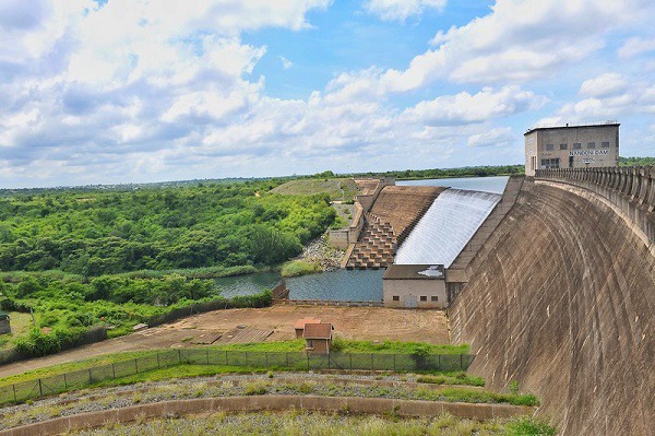 De Nandoni Dam op de Levubu rivier, die afgelopen weekend door president Ramaphosa werd bezocht, is voor 101% gevuld (foto: Overheidscommunicatie- en informatiedienst).