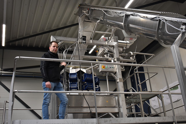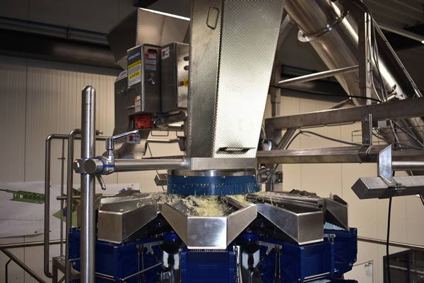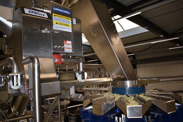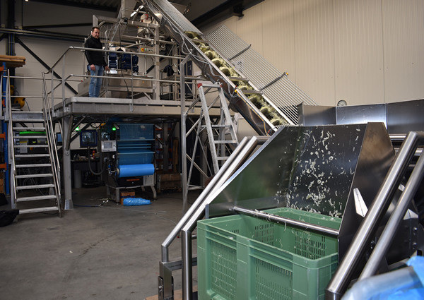 De nieuwe lijn gaat letterlijk de hoogte in. Met een snijmachine van Urschel, de weger van Multipond en de verticale verpakkingsmachine van vh vertical packaging werd de totale lijn opgebouwd, waarbij de snijmachine boven de weger is gepositioneerd. "Dat is wel uniek in machineland, meestal wordt dit met een transportband opgevangen en verder naar de weger getransporteerd. Nu scheelt het een opvoerschroef of transportband, dus ook schoonmaakkosten ", vertelt Kees. ISM verzorgde de complete lay-out engineering inclusief kantelaar, opvoerschroef, metaaldetectie en de complete besturing.
