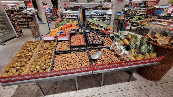 “Na een fantastisch dag waarin de winkel 2x werd bezocht en werd beoordeeld en ik het hoogst haalbare cijfer heb mogen ontvangen dan kan je dag toch niet meer stuk?”, kijkt Hans terug. Of hij er extra hard voor gewerkt heeft? “Nee! Alles draait en staat met plannen en organiseren, je collega's begeleiden en het belangrijkste op mijn vakgebied: passie!” Nog nagenietend van zijn cijfer is hij inmiddels vol aan de bak voor komende week en geniet hij extra van al het moois dat op de AGF-afdeling staat uitgestald.