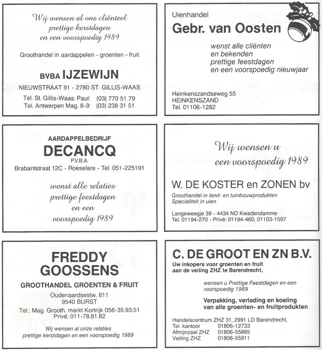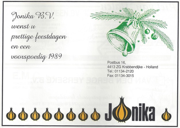 Vandaag een bonte verzameling van de verschillende kerst- en nieuwsjaarwensen uit de kerst Primeur van 1988. Graag wil ik bij deze van de gelegenheid gebruik maken om iedereen te bedanken voor alle leuke en soms ook ontroerende reacties, op de 'uit de oude doos', die wij hebben mogen ontvangen. Goede kerstdagen een een voorspoedig 1989.