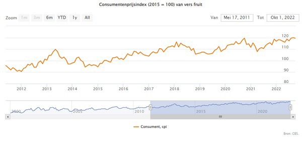 Agrimatie heeft de voedselprijzenmonitor van oktober 2022 uitgebracht. De voedselprijzenmonitor volgt de prijsontwikkelingen op drie niveaus in de voedselketen. Hieronder de actuele voedselprijzen voor aardappelen, groenten en fruit.