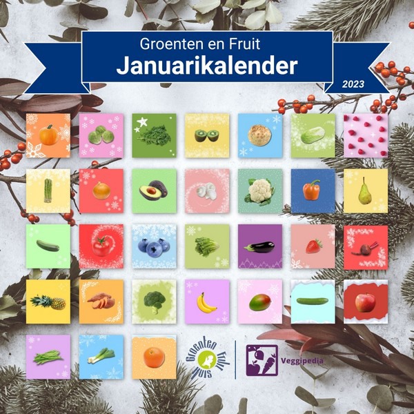 De hele maand januari wordt er elke dag een groente- of fruitproduct centraal gezet, met daarbij een passend recept van Veggipedia.nl boordevol groenten en fruit. Veggipedia.nl staat vol met informatie over allerlei groente- en fruitsoorten. Van voedingswaarde en bewaartips tot aan ruim 400 gezonde, lekkere recepten. De januarikalender is ontworpen om mensen te inspireren en te motiveren om lekkere gerechten te maken met groenten en fruit en ze te helpen bij het maken van een gezonde start in 2023. Met als uiteindelijk doel een hogere consumptie van groenten en fruit.