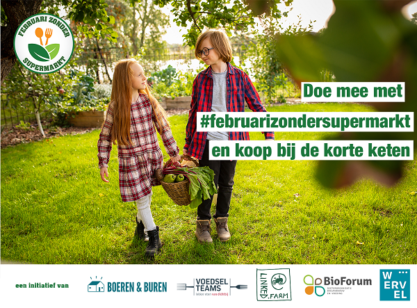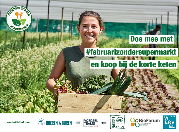 Een maand lang niet naar de supermarkt gaan, maar in plaats daarvan eten kopen bij lokale handelaren en producenten. Dat is het uitgangspunt van ‘Februari Zonder Supermarkt’. De Belgische korte ketennetwerken en organisaties Boeren & Buren, Voedselteams, Linked.Farm, Wervel en BioForum bundelen in februari hun krachten om te wijzen op een gezond en duurzaam voedselsysteem met meer ambitie voor de korte keten.