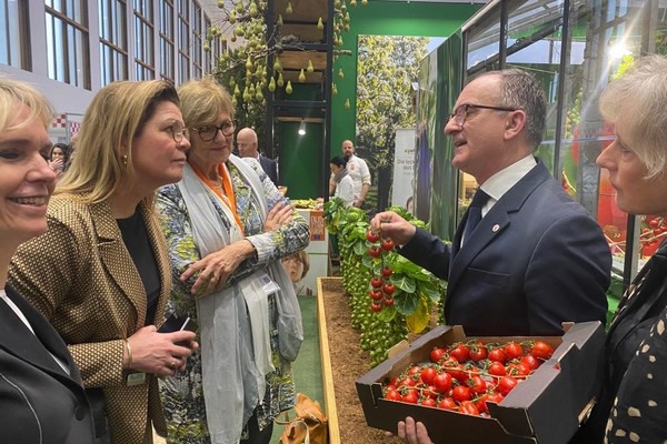 Vanmorgen vroeg heeft minister Van der Wal op de Messe in Berlijn het Nederlandse paviljoen op de Grüne Woche officieel geopend. Zij deed dit samen met de Duitse minister van Landbouw Cem Özdemir. Minister Piet Adema kon het openingsmoment helaas niet bijwonen aangezien hij hals over kop terug naar Nederland moest voor de Ministerraad. De Grüne Woche is het trefpunt voor de Duitse en internationale landbouw- en agrifoodsector. Minister Van der Wal eindigde haar rondgang bij de stand van de Nederlandse groente- en fruitsector.