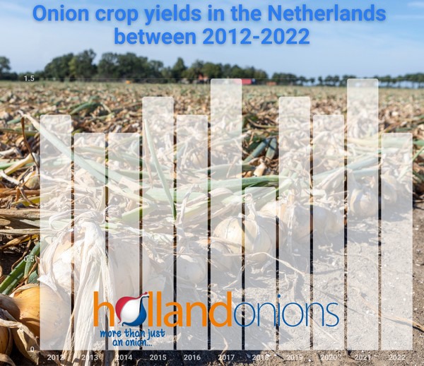 De bruto-opbrengst zaai-uien is in 2022 vergeleken met een jaar eerder met 17 procent afgenomen. Volgens de recent gepubliceerde definitieve oogstraming van het CBS bedroeg in 2022 de bruto-opbrengst zaaiuien 1,2 miljoen ton, een afname van 17 procent vergeleken met het voorgaande jaar. Dat is weliswaar de laagste opbrengst sinds 2019, maar is gelijk aan de oogstjaren 2013 en 2014. Er werden totaal 1 miljoen ton gele en 0,2 miljoen ton rode zaai-uien geoogst. Ook werd er voor 268 duizend ton aan plantuien geoogst. De definitief vastgestelde totale bruto opbrengst per ha is daarmee ten opzichte van de oogstraming vrijwel hetzelfde gebleven met 44,5 ton per hectare. De verhouding tussen gele en rode uien werd wel iets bijgesteld. Waar de eerste raming voor gele uien 44,5 ton per hectare bedroeg kwam er een ton bij tot 45,5 ton, terwijl de rode uien inleverden qua opbrengst ten opzicht van de eerste raming van 42,9 ton naar 40 ton per hectare. Het bruto opbrengstverschil tussen geel en rood was dus 5,5 ton per hectare, oftewel 12 procent minder kilo’s.