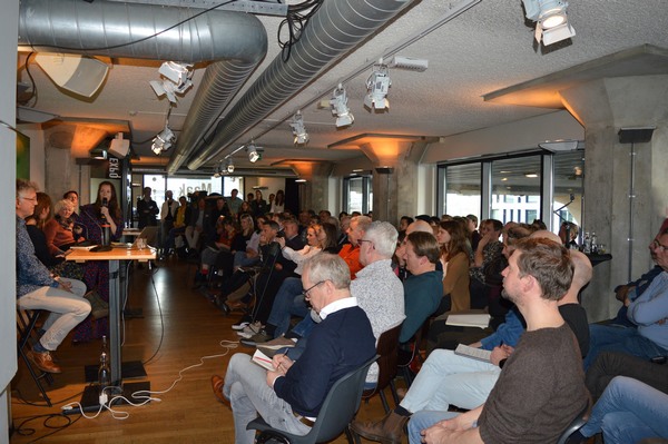 Alle stoelen waren bezet. Ook van de 'staplaatsen' aan beide kanten van de zaal werd nog dankbaar gebruik gemaakt.