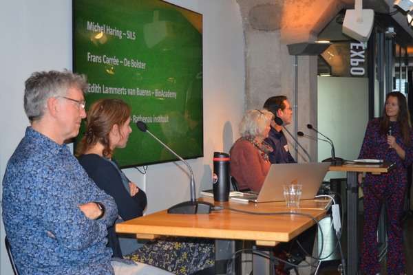 Na de presentatie van Michel volgde nog een paneldiscussie met Michelle Habets, senior onderzoeker bij het Rathenau Instituut en houdt zich bezig met maatschappelijk vraagstukken op het gebied van opkomende biotechnologieën. Ook Edith Lammerts van Bueren, die een kader heeft ontwikkeld om veredelingstechnieken te beoordelen op passendheid bij de biologische waarden schoof in het panel aan, net als Frans Carrée, plantveredelaar bij De Bolster Biologische Zaden.