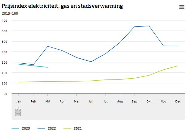 Het CBS publiceert sinds 1996 twee verschillende cijfers voor inflatie. Een op basis van de consumentenprijsindex (CPI) en een op basis van de geharmoniseerde index van consumentenprijzen (HICP). Consumentengoederen en -diensten in Nederland waren volgens de HICP in maart 4,5 procent duurder dan in dezelfde maand een jaar eerder, in februari was dat 8,9 procent. De inflatie in de eurozone daalde van 8,5 procent in februari naar 6,9 procent in maart.