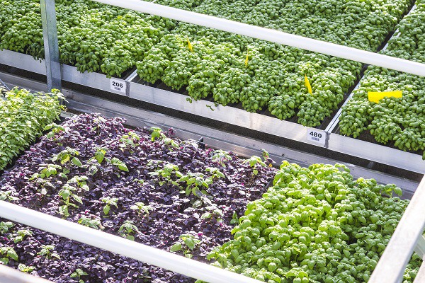 "Een deel van onze kruiden wordt geteeld op 5.600 vierkante meter in het oude teeltbedrijf, waarvan ongeveer 800 vierkante meter twee tot zes verdiepingen hebben, inclusief een kiemkamer. We hebben ook een koelcel van 14.000 vierkante meter. In 2010 begonnen we met een proefproject van teelt op dubbele verdiepingen en in 2015 bouwden we een faciliteit van 7.200 vierkante meter op twee niveaus, met 13.000 vierkante meter teeltruimte. In totaal telen we 6,5 miljoen kruiden in potten.