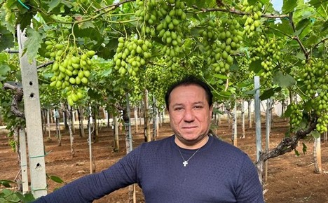 "Het druivenseizoen loopt een week voor op schema. De eerste trossen zullen rond 15/20 mei worden gesneden. Dan zullen we Black Magic en Victoria druiven oogsten, zo’n beetje de vlaggenschipproducten van onze streek. We hebben het natuurlijk over teelt in de kas, waar toch ook 20-30% minder opbrengst dan gebruikelijk wordt verwacht. De planten hebben helaas niet voldoende koude-uren gehad, wat de knopvorming heeft vertraagd. Maar de kwaliteit is nog steeds uitstekend en we denken een mooie oogst te kunnen hebben."