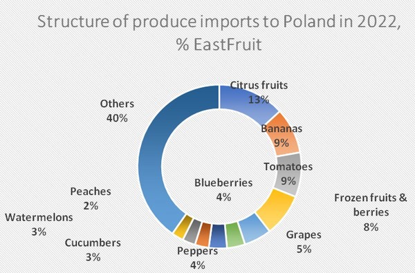 Volgens de analisten van EastFruit blijft Polen, ondanks zijn wereldleiderspositie in de export van bepaalde soorten fruit, zoals appelen of diepgevroren frambozen, een belangrijke netto-importeur van producten en zou het een zeer aantrekkelijke markt kunnen zijn.