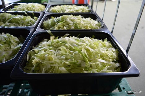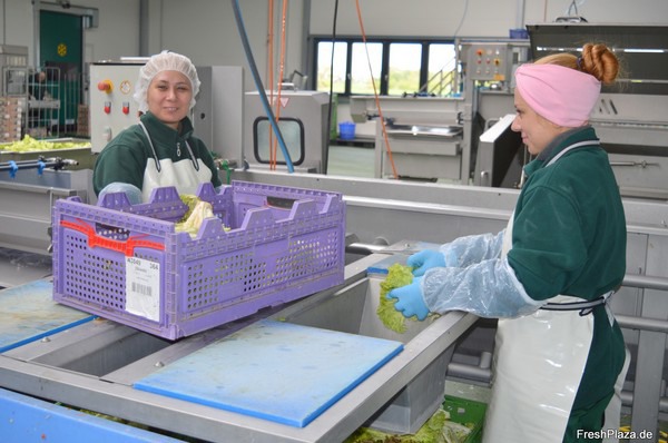 Het toenemende personeelstekort in de horeca speelt duidelijk in op de vraag naar kant-en-klare AGF. Dienovereenkomstig is het eisenprofiel voor vers gesneden artikelen veranderd, en daarom heeft Fruchthaus Hulsberg geïnvesteerd in machines en de modernste technologie. De productiehal heeft nu onder andere was- en snijlijnen voor sla, die binnenkort tot 60 zakken sla per minuut kunnen verpakken, zegt Denizyilmaz. Bepaalde artikelen worden nog met de hand gesneden.