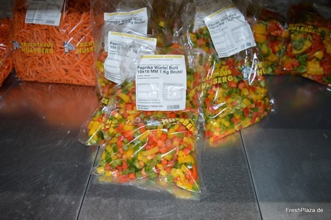 In de nacht van 1 op 2 mei zijn de eerste producten verzonden op de nieuwe locatie van Fruchthaus Hulsberg in Ganderkesee. Het middelpunt van het nieuwe pand is de snijderij, waar met de nieuwste technologie onder meer gesneden salades, uien en champignons worden verwerkt voor de horeca en instellingen. Hoewel het pand de komende maanden pas in fasen wordt voltooid, gaven eigenaar Engin Denizyilmaz en vertegenwoordiger Patrick Wohlers ons alvast een rondleiding door de hal.