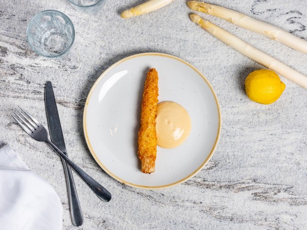 - Gefrituurde asperge met miso hollandaise
