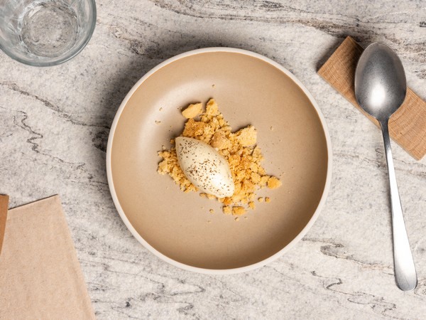 - Ijs van asperges met zwarte peper en amandelcrumble