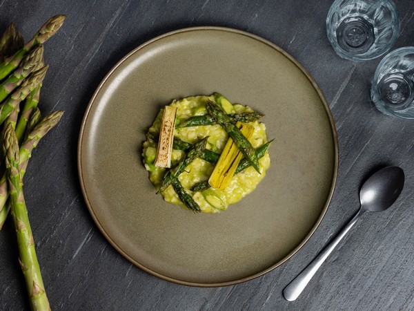 - Risotto van basilicum, prei en groene asperges
