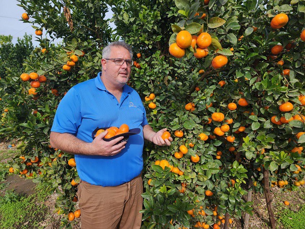Snyman Kritzinger, algemeen directeur van Grown4U, in een Tango boomgaard in Sundays River Valley waar het fruit dit jaar uitzonderlijk vroeg geoogst kan worden