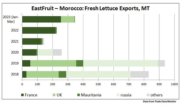 In 2023 veranderde de situatie en Marokko is teruggekeerd naar de Britse markt, met ongeveer 90 ton export in januari-maart. EastFruit meldde al dat de handel met de EU moeilijker is geworden voor de Britse importeurs na de Brexit. Ze kunnen Marokkaanse handelaren dus als een betrouwbaar alternatief zien en de Marokkaanse export naar het VK, inclusief die van sla, zal hoogstwaarschijnlijk blijven groeien.