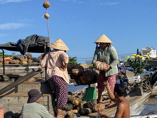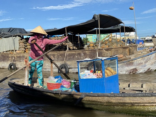 De Mekong-delta wordt doorkruist door talloze rivieren en bevaarbare kanalen die vóór de aanleg van wegen en bruggen het enige communicatienetwerk waren. De handel in landbouwproducten vond voornamelijk plaats langs de waterwegen en de drijvende markten waren dé plek voor de afzet van groenten en fruit.