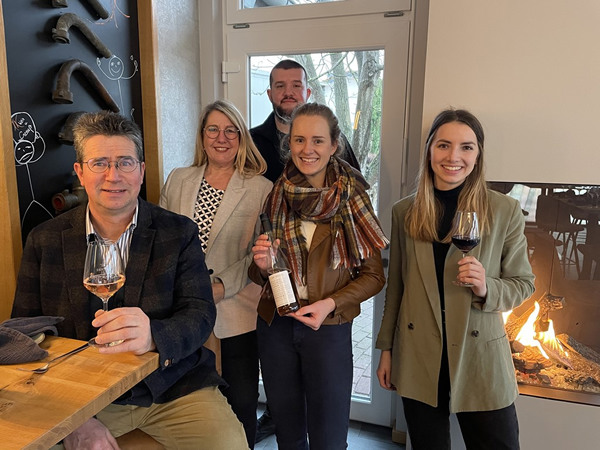 v.l.n.r. Eckhard Kloste, Simone de la Motte en Kathrin Poetschki, Richard Schwiete en Melina-Lisanne Kraul. Foto: Agrobusiness Niederrhein e.V.