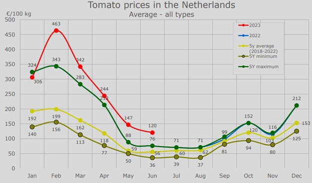 Tomatenprijzen in Nederland. Klik hier voor vergroting