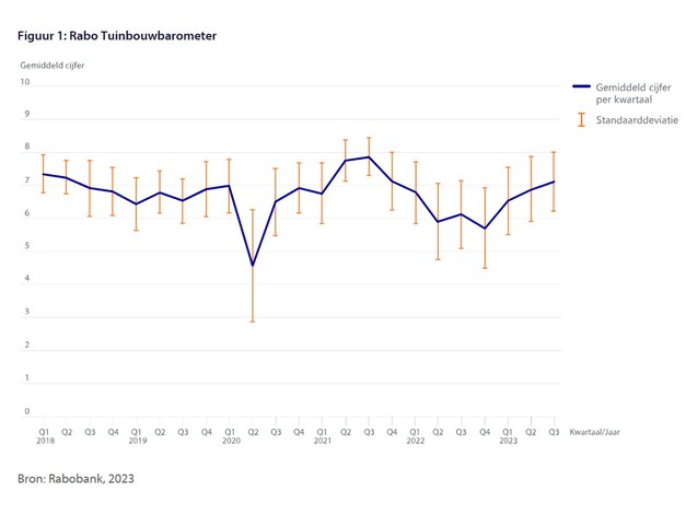 De Rabo-tuinbouwbarometer is een onafhankelijke kwalitatieve inschatting van een panel van dertig Rabobank-medewerkers die betrokken zijn bij klanten in de tuinbouw. Dit panel geeft antwoord op de vraag: “Welk rapportcijfer geeft u de financiële ontwikkelingen van tuinbouwbedrijven op dit moment?” Hieruit ontstaat een kengetal dat aangeeft hoe de tuinbouw zich gemiddeld financieel ontwikkelt.