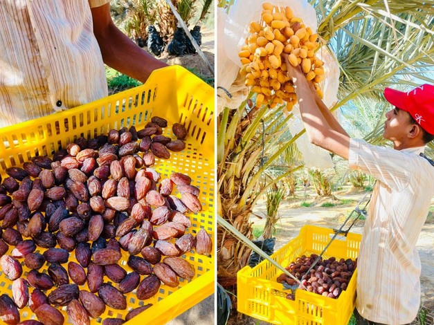 De eerste Egyptische Medjoul dadels zijn dit jaar eerder geoogst dan verwacht. "We lopen 10 dagen voor op schema en dat komt door de weersomstandigheden", zegt teler en exporteur Ramadan El Sayyad. "We oogsten tot half september en vanaf het begin van die maand zullen we al bezig zijn met sorteren en verpakken. Onze exportprogramma's lopen van de tweede week van september tot en met de maand Ramadan (van 10 maart tot 9 april 2024)."