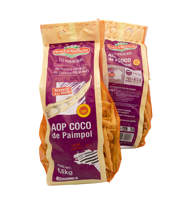 Op het gebied van verpakkingen biedt de Association d'Organisations de Producteurs (AOP) Coco de Paimpol drie verschillende verkoopformaten. "We hebben de traditionele 8 kg zakken, het grootste formaat zakken dat we hebben. Deze zakken worden gewaardeerd door retailers die ze gebruiken voor hun promotionele activiteiten. Daarnaast zijn er zakken van 5 kg en tot slot netzakken van 1,5 kg voor dagelijks gebruik.