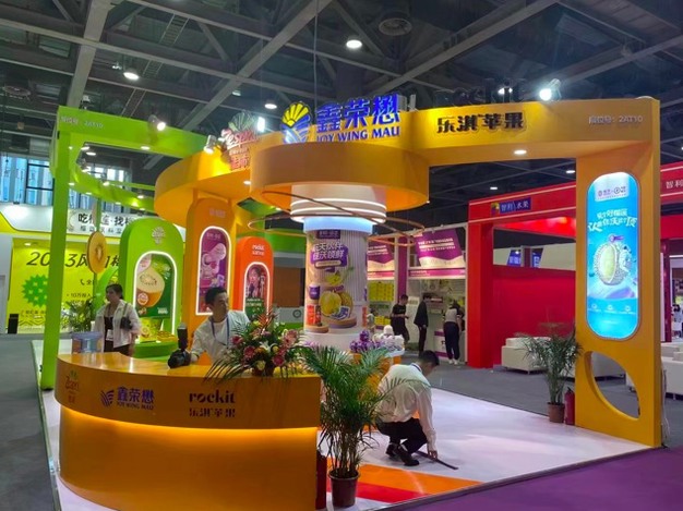 Joy Wing Mau Group, Zespri en Rockit hebben gezamenlijke stands om hun producten te tonen.