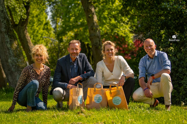 Stichting Baby Groente Tas wordt geleid door v.l.n.r Annet Hoek (bestuur), Joris Heijnen (bestuur), directeur Floor Volker (directie) en Joris Bongers (bestuur)