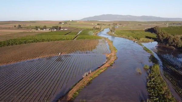 "De gevolgen waren verschrikkelijk. De Berg River heeft zelf nieuwe kanalen gecreëerd, is buiten haar oevers getreden en heeft vele hectaren land weggevaagd," vertelt Eurica Scholtz, vertegenwoordiger van de Berg River Irrigation Board.