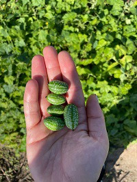 Dit jaar is teler Kai Reinheimer uit Ginsheim begonnen met het telen en verkopen van Mexicaanse snackkomkommers. "Toen ik op zoek was naar speciale producten, kwam mijn dochter Nina de snack-komkommers tegen. Ze hebben een rijpingstijd van ongeveer vijf maanden. In tegenstelling tot traditionele komkommers, die omhoog groeien, blijven de snackkomkommers als knikkers op de grond liggen en groeien ze rond. Tot nu toe hebben we slechts 28 kg geoogst, met nog ongeveer 30 kg voor de boeg."