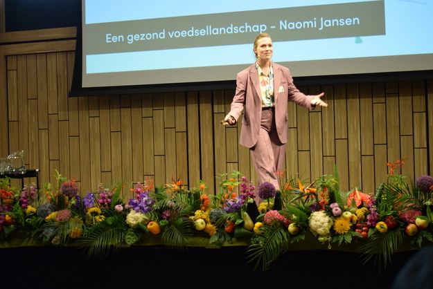 Naomi Jansen besprak in haar lezing "De Voedselapotheek" haar missie om gezond eten toegankelijk te maken voor iedereen door gezonde voedselomgevingen te ontwerpen. Ze betrekt actief de doelgroep en stakeholders bij dit proces en werkt samen met gemeenten en lokale ambassadeurs. Haar aanpak omvat het creëren van gezonde schappen in supermarkten, bewustwording stimuleren en samenwerken met studenten om oplossingen voor de toekomst te ontwerpen.
