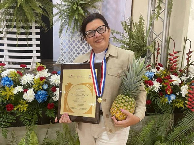 "Op 8 oktober werd ons door president Laurentino Cortizo en de minister van Landbouw een medaille overhandigd voor het Beste Grote Teeltbedrijf van 2023. Het vervult ons met trots en het is het resultaat van het harde werk van een geweldig team van vrouwen en mannen die waarden delen zoals gendergelijkheid, inclusiviteit, empowerment van vrouwen en werknemers, teamwork, respect voor mens en milieu, passie voor wat we doen, preventie en bescherming op het werk, naast natuurlijk voedselveiligheid en de kwaliteit van onze ananas." Espinoza was blij dat ze als exposant de ananas van Tropical Fruit Company kon laten zien op de Fruit Attraction in Madrid op een gezamenlijke stand van Propanama.