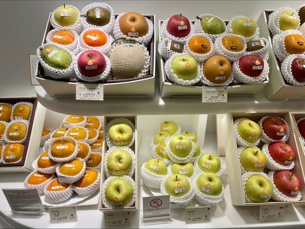 💍Fruitjuwelier – Fruit is niet alleen voor dagelijkse consumptie. In Japan wordt fruit gezien als een kostbaar geschenk dat wordt gegeven aan iemand op wie je indruk wilt maken, je dankbaarheid wilt tonen of het beste wilt wensen. Er zijn zelfs gepelde druiven te koop! Al staat de Yen goed, een fruitmandje van ¥21.000 kost je zo'n €130. Ook het schap van enkele grotere supermarkten is een cadeautje om te zien. Met zoveel aandacht en respect gepresenteerd.