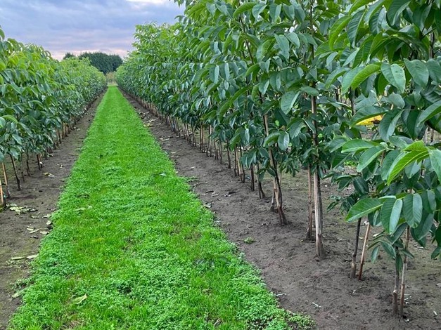 Hugo teelt van origine hardfruit in het Vlaamse Ranst. Tot hij in 2017 besluit dat hij iets anders wil gaan doen. Met behulp van de Vlaamse overheid besluit hij het agroforestry systeem toe te passen op zijn perceel. Een systeem waarbij het beheren van bomen wordt gecombineerd met de landbouw. Zo wordt een deel van de hardfruitbomen gerooid en maken plaats voor walnootbomen. "Inmiddels heb ik zo'n 8 hectare aan walnoten, waarbij er tegen de 200 bomen per hectare staan. Daarnaast kweek ik ook walnotenbomen voor anderen die geïnteresseerd zijn", legt Hugo uit.